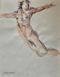 Leap of Faith, watercolor and charcoal, 24 x 18 inches