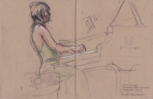 Yuja Wang with the BSO at Tanglewood, Graphite and pastel on Toned Paper, 2016 Graphite and Pastel on Toned Paper. Signed by Ms. Wang.